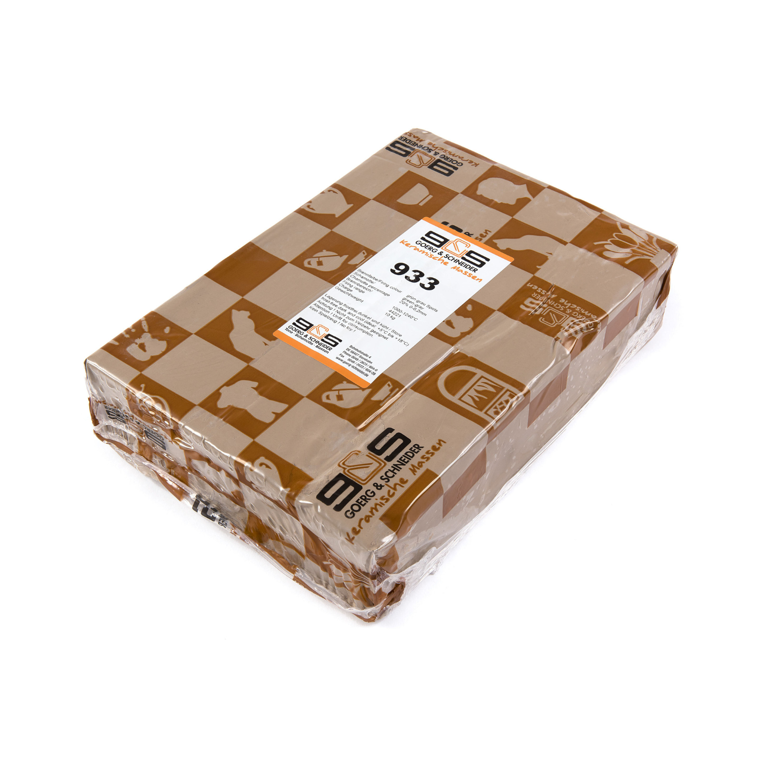 Goerg & Schneider 933 är en ljus korkfärgad stengodslera med 20 % chamotte i kornstorlek 0–0,2 mm, kombinerad med naturliga basaltprickar som ger en unik och dekorativ yta.